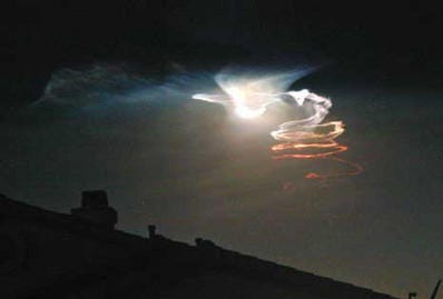 Nice display in the sky this evening in Los Angeles. The picture there shows pretty much what I saw from my front yard, even though I didn't take it. Supposedly a Minuteman ICBM missile from Vandenberg airforce base.