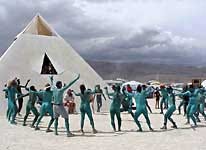 The day ended with a small rave party of sorts. Drumming, dancing, stilt walkers, video from the Burning Man Opera and more.