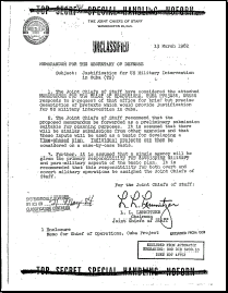 That was in 1962, and the plan wasn't actually carried out at the time, possibly due to a fear of Russian retaliation. See the original document, obtained by the Freedom of Information Act from the National Security Archive. Do you think projects like that are more likely or less likely today under president Bush than they were under president Kennedy?