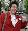 This guy is wearing a name tag all the time. I've met people like that. And I've considered it myself. As the article says, it is friendly and welcoming. There's less of a barrier for people to start talking to you. It's an invitation. Plus it is easier to remember people, easier to recognize people. A web link would be even better, of course. I'd like to just click on people across the room with a laser pointer or something, and find out who they are. Well, maybe something else that doesn't turn them blind at the same time.