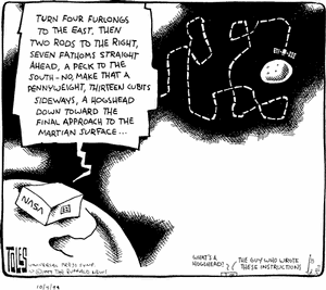 I'm so looking forward to go back on the metric system. The world just fits so much better together when its measures actually make sense and have something to do with each other. In America the measures are arbitrary and have very little to do with each other. How many feet in a mile? How many ounces in a pound? I have no clue. It makes the world kind of disjointed to still use those mideaval measures. I notice how my perception of the measurability of the world has deteriorated while living here. Compared with how beautifully I perceived everything as fitting together when I was in high school. You know ...