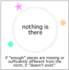 Conversely, we can also create an invisible reality, if it is constructed of elements that are so unfamiliar and unexpected that we just can't see it. A stage magician is usually quite adept at that. You don't see what he's really doing because you're not attuned to the patterns he's using.