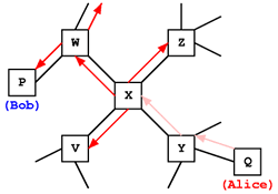Here's another overview of how ants find food, with the thought towards applying that to program algorithms. It is from MUTE, a new file sharing program. They use a similar, but somewhat improved, approach to decide how best to find a certain user in the network. I fail to see exactly why it would be useful or efficient to do it that way, but there's something there, of course. Generally speaking the thought is that we have a network, similar to a neural network, and it learns how best to find stuff based on the success of past attempts to find it. Which is how it should be, of course. But ants only need to signal where there's food and where the home nest is. It is, despite the simple 'random' approach to mapping it, a rather centralized scheme of organization. The ants are not centrally controlled, but it all revolves around bringing food back to the nest and similar activities. We have potentially billions of pieces of information and billions of places to find it. I'm not sure how we can manage that really well without each node keeping a whole record of everything it has been asked for and where it sent it and where it came back from. Kind of like a google database in each node. But maybe I just don't get it yet.