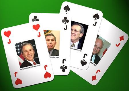 Al Qaida couldn't dream of a better government in the U.S. than George Bush's. They're a splendid help in the direction of destroying the United States, in providing plenty of new places to have terrorist bases, and plenty of new well-motivated recruits. And Bush could sure use another terrorist attack to boost his ratings. Quite some win-win synergy there. So, what do you say are the chances for that happening before November? Or, even better, around the election itself? Bush's people seem to be planning for just that. Cancel the election, declare a national state of emergency, and just stay on as a dictator. That's a great plan.