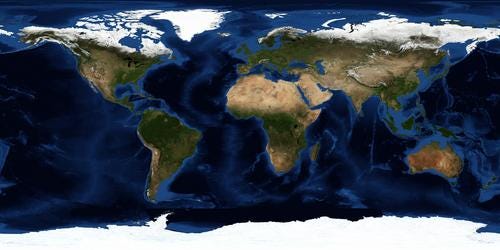 NASA has a new series of "Blue Marble" pictures of the Earth from space, composite pictures, completely without cloud cover. Many resolutions and versions, like here or here, and animations too.