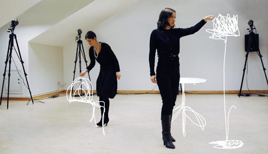 Pen strokes made in the air are recorded with Motion Capture and become 3D digital files; these are then materialised through Rapid Prototyping into real pieces of furniture.Very cool. Yeah, that makes it feel a little like we're actually living in the 21st century. (Via BoingBoing)